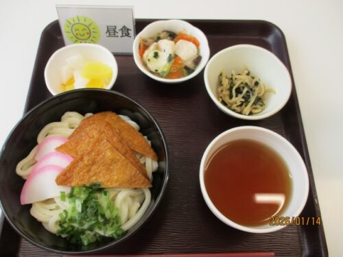 ↓きつねうどん・海鮮団子と野菜の甘辛煮・切干大根酢の物
