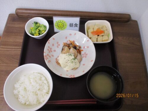 ↓鶏のタルタル焼き・高野豆腐の煮物・ブロッコリーサラダ