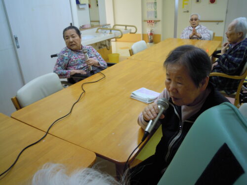 スタッフの合いの手も含まり,カラオケをとても楽しんでいました。(^^♪