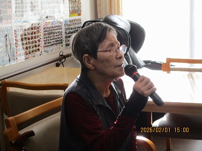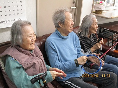 さわやかそう花の里 カラオケ🎤 2026-02-02 2026-02-02 こんにちは 新規入居の方もカラオケを楽しんでおります♪ 一緒に口ずさんだりタンバリンで盛り上げてくださったり(⌒∇⌒) 楽しい1時間はあっという間に終わってしまいますね~✨ 担当:白鳥