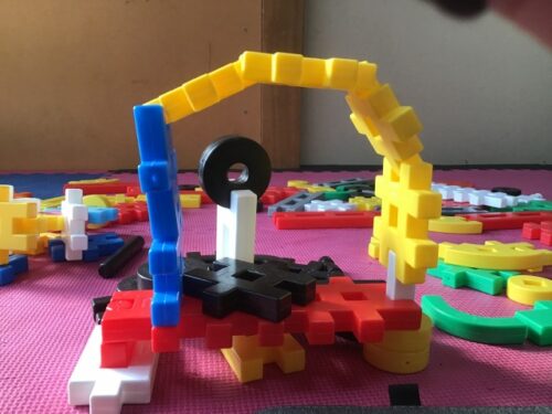手前にある中央のブロックの両端に他のブロックがついているものが