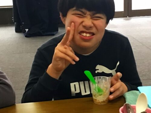 完成すると、「早く食べたい」「冷たい」と笑顔いっぱい。