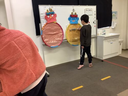 こんにちは! さわやか愛の家さいじょう館です。少しずつ春の足音が聞こえてくる季節になりましたが、皆様いかがお過ごしでしょうか。 さて、本日の活動は**「節分・豆まきゲーム」**を行いました!