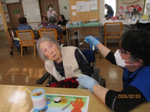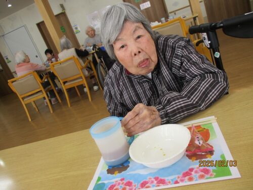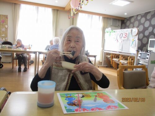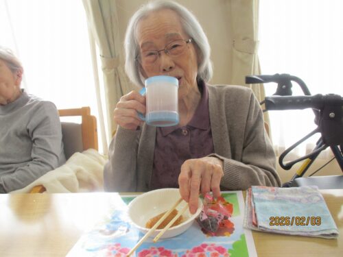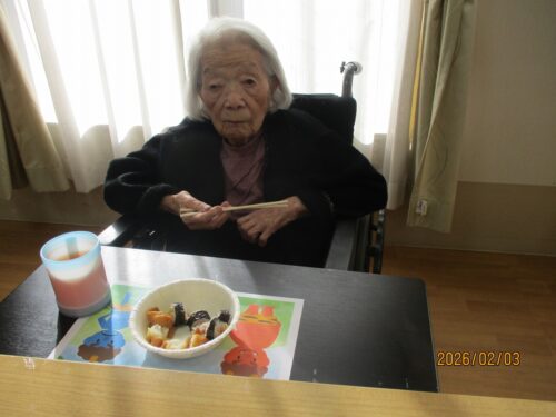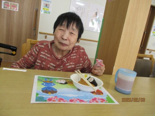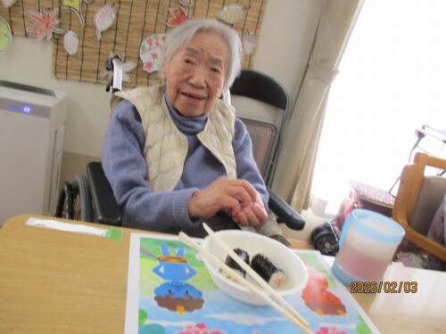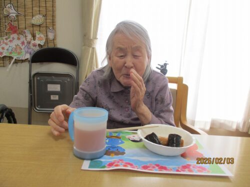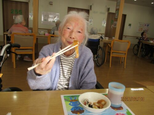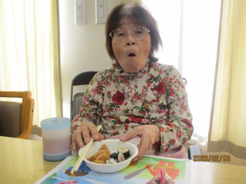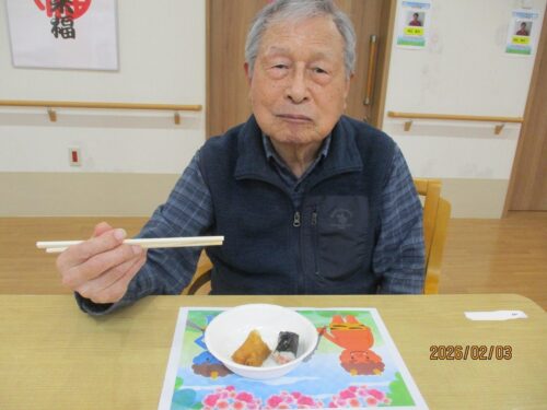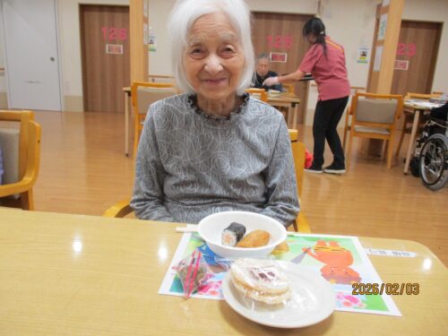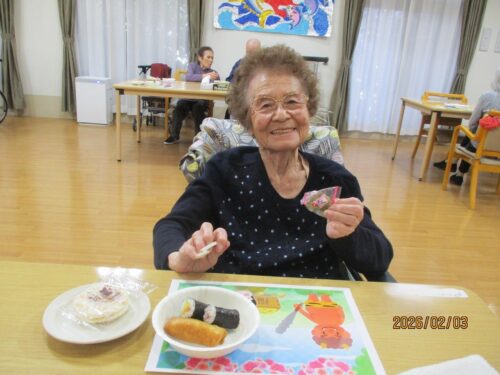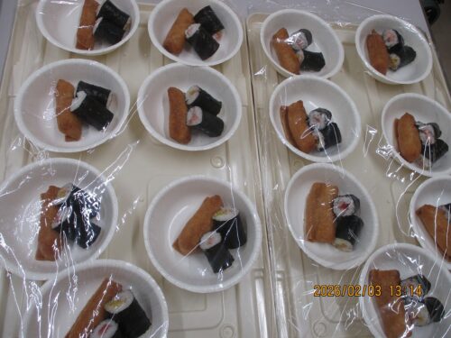 節分という事で、のり巻きとお稲荷さんで無病息災を願いました。