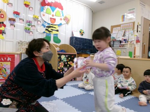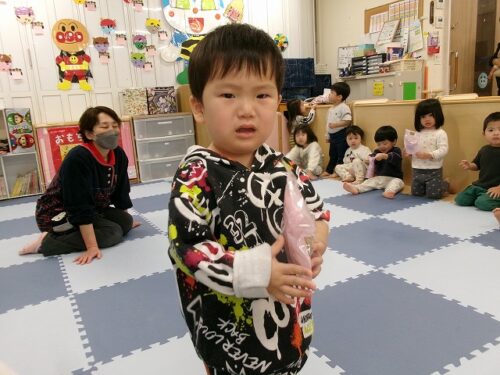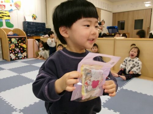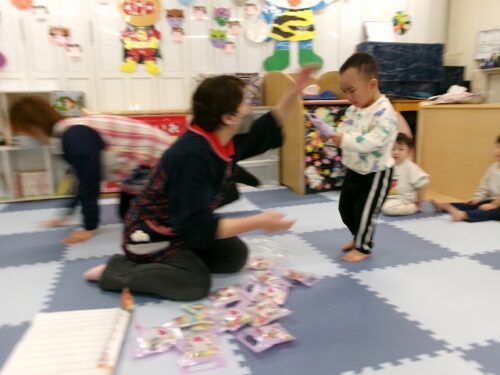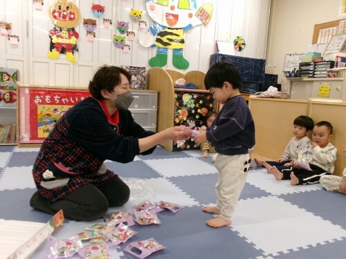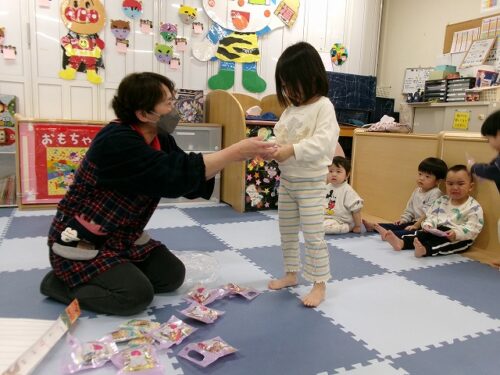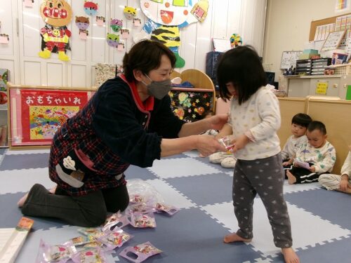 オニが帰った後、頑張ったねのプレゼント渡し!