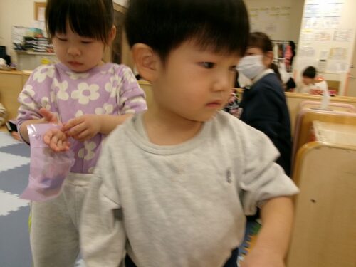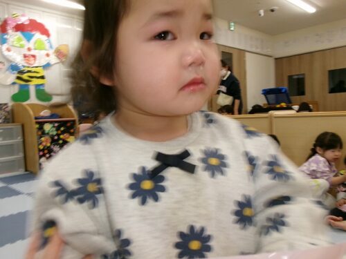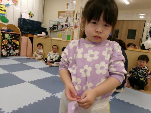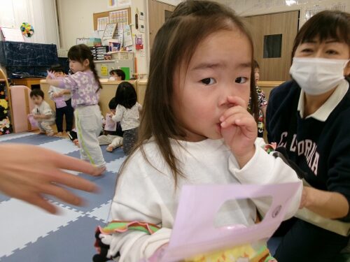 「お菓子もらっちゃったっ」(一番泣いてなかったね!)