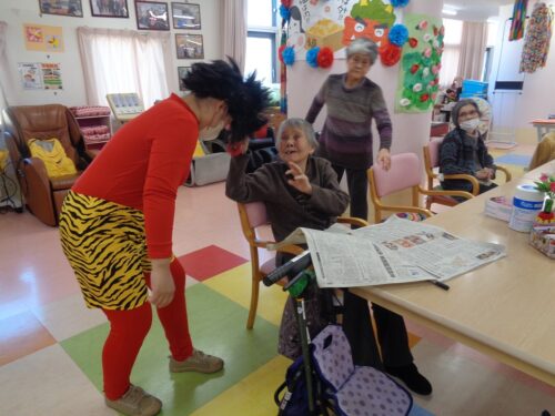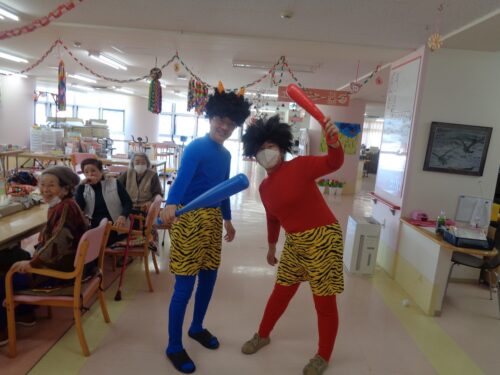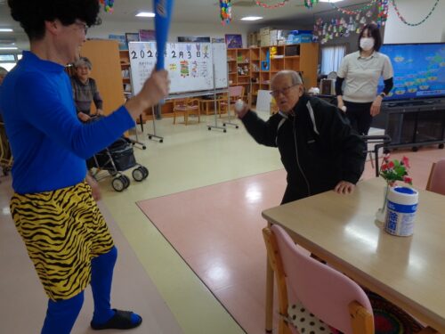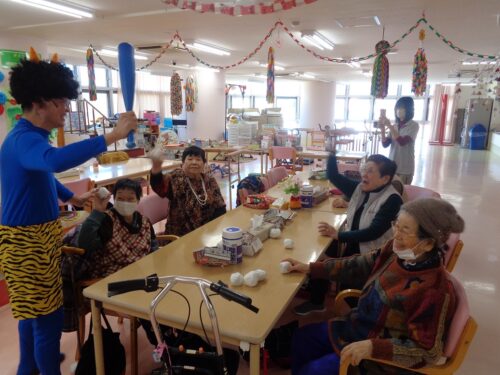 早速、豆に見立てたボールを鬼に投げてもらいました🥎