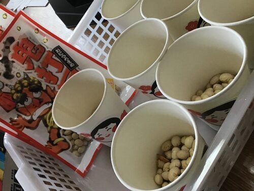 狙いをさだめて豆を投げていきます!