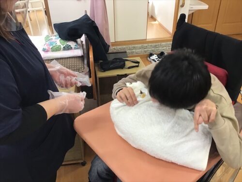 昼食時間には、食べるのを手伝ったり、見守りをします