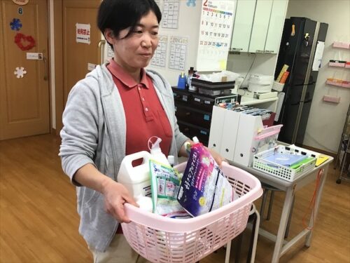 それからそれから、週に1回、洗剤や消毒の補充を行います