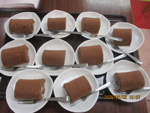 豆まきの後には、恵方巻ならぬ恵方ロールを召し上がって頂きました(●´ω`●)