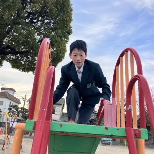 公園に着くとまず入口の神社⛩️を「遊ばして下さい」と丁寧に挨拶する児童。