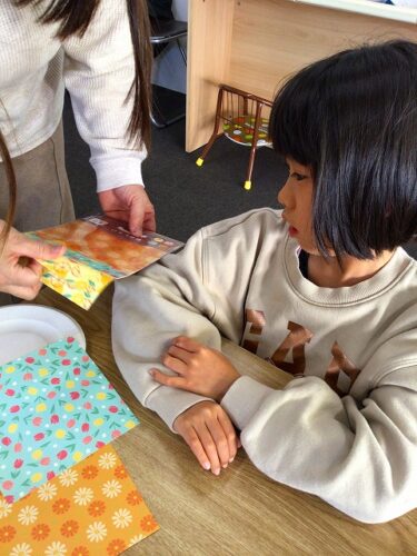どの子も、一枚一枚丁寧に切り取り、集中して貼る様子が見られました。
