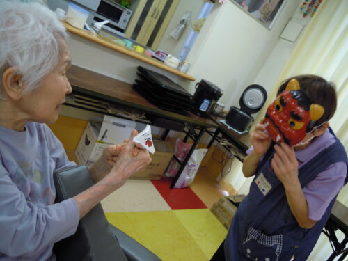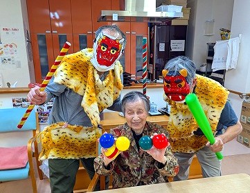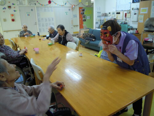 入居者の皆様、鬼に目掛けて…