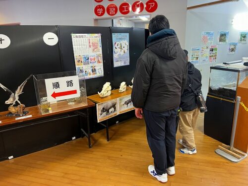 1階には鳥の剥製やイノシシの頭蓋標本など迫力満点でした❗