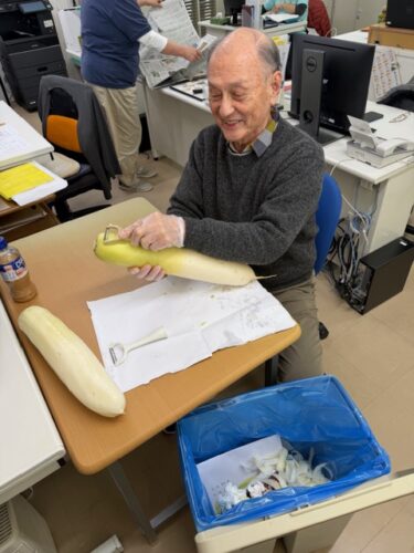 先日、自宅で畑をやっている職員さんが大根で何か作る?