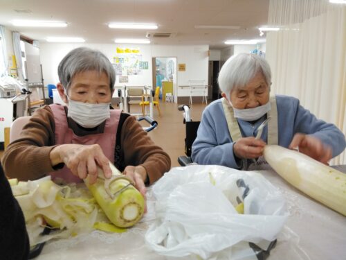 たくさん頂いたので入居者様にもお手伝いをして頂きました♪