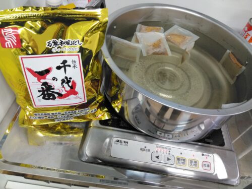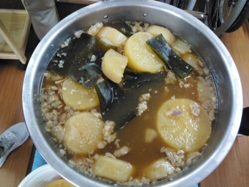 さぁ、皆さんに切って頂いた大根を下茹でして
