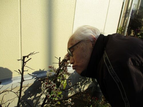 先週の金曜日のぽかぽか陽気の時、玄関先に咲いた梅の花を見にちょっと外へ💕