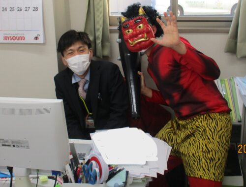 今回は2階で豆まきした時の様子をお届けしたいと思います!