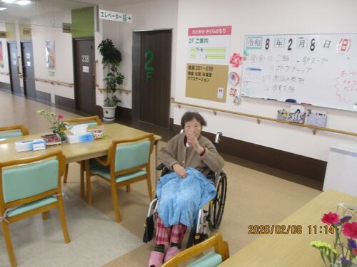 さわやかさくらのもり 元気!【さわやかさくらのもり】 2026-02-08 2026-02-08 皆様こんにちは!さくらのもりです。 一段と寒い日が続きますがいかがお過ごしでしょうか? さくらのもりの皆様は体調を崩すことなく元気です! 本日の面会 足元の悪い中の面会ありがとうございました! さくらのもり今野がお届けしました。
