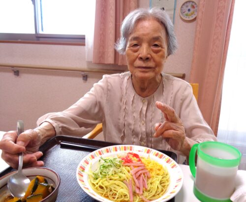 カメラに気付かず冷やし中華に集中する入居者様も😍💖