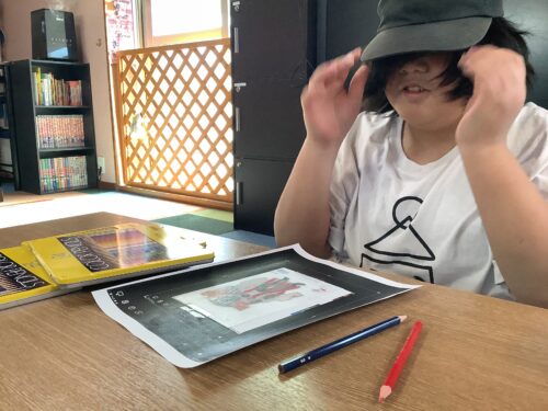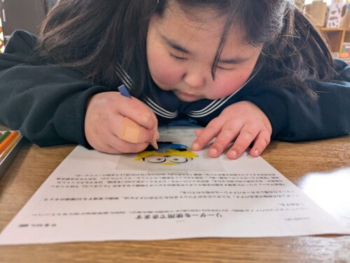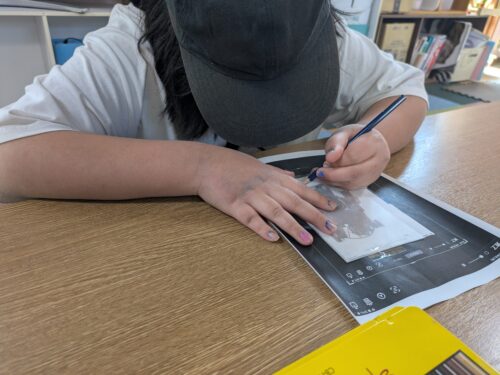鉛筆や✏️色鉛筆で絵柄をうつしていきます