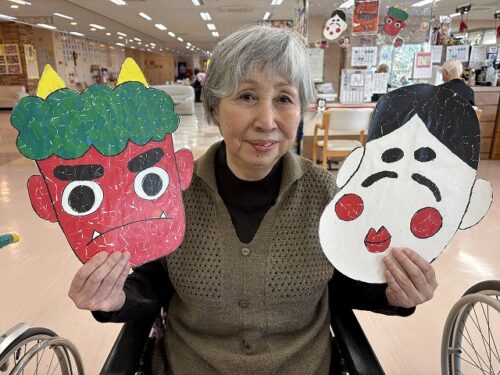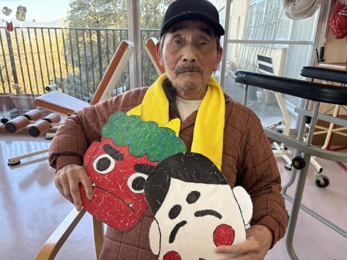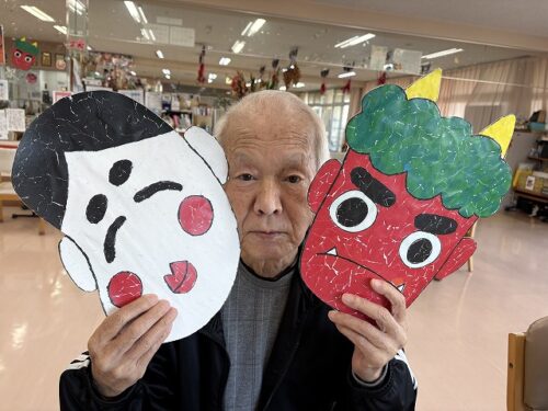 鬼👹とお福さんのお面と一緒に。