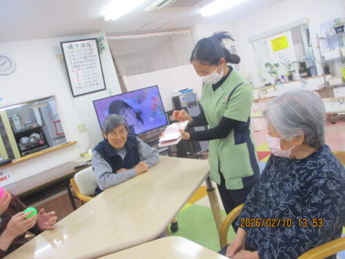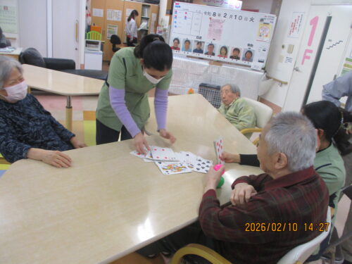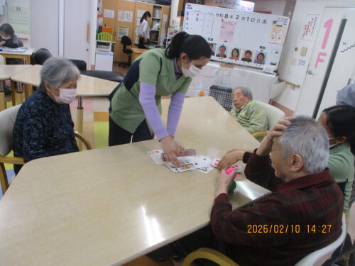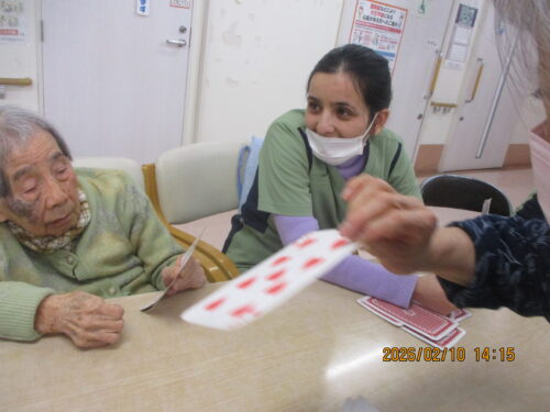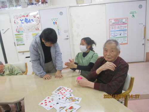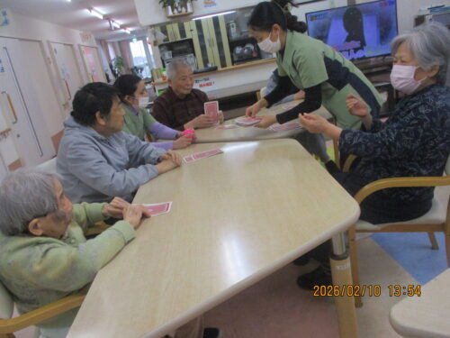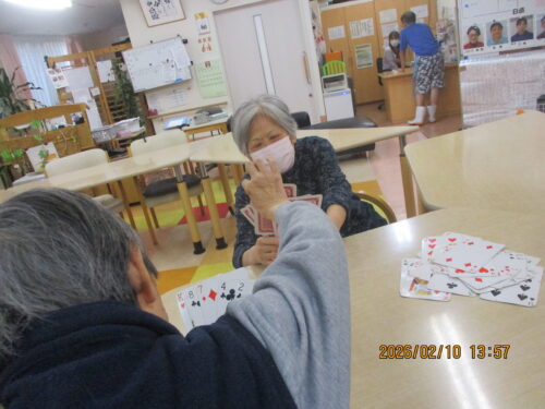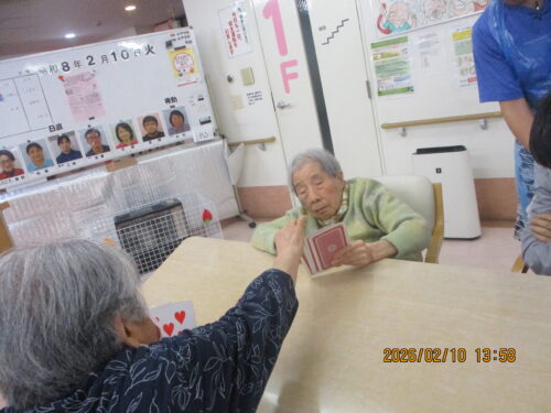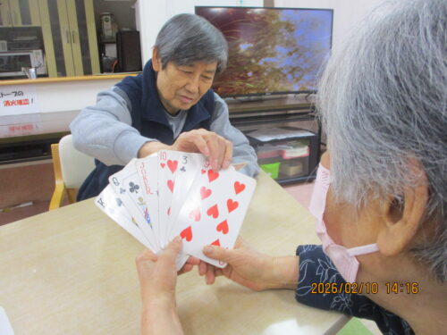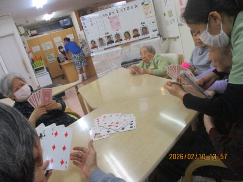 今日は、ご利用者様も沢山おられたのでみんなでトランプをして楽しみました(∩´∀`)∩