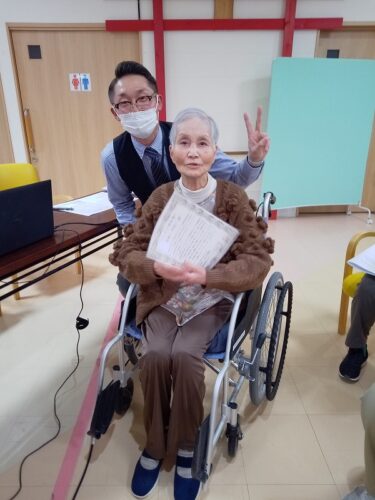 今月の職員会議から入居者様の表彰の様子をお送りします