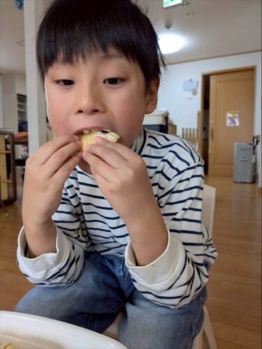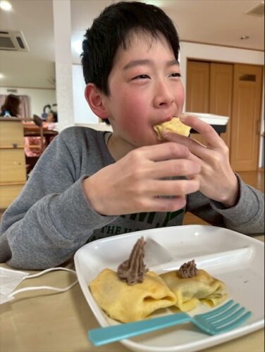 口いっぱいにクレープを頬張り児童たち皆んないい表情です😊✨
