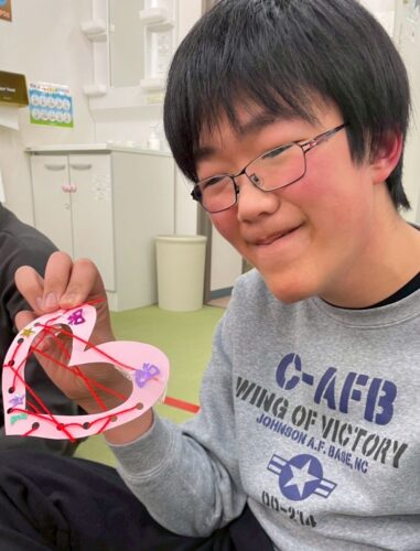 さわやか愛の家 あかいわ館 ハート 2026-02-24 2026-02-24 こんにちは、あかいわ館です。 バレンタイン前の活動でハートを作りました。 赤い毛糸を通します。 通す穴が多いので大変です🧶 通せたら、リボンや星のスパンコールを貼って完成です。 きれいなハートができました💖 さわやか愛の家あかいわ館 花房
