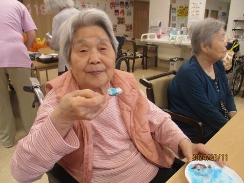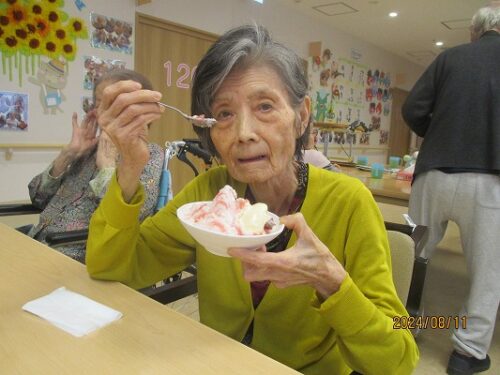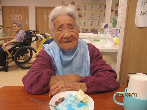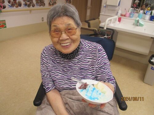 先日は一階でかき氷作りのレクリエーションを行いました。