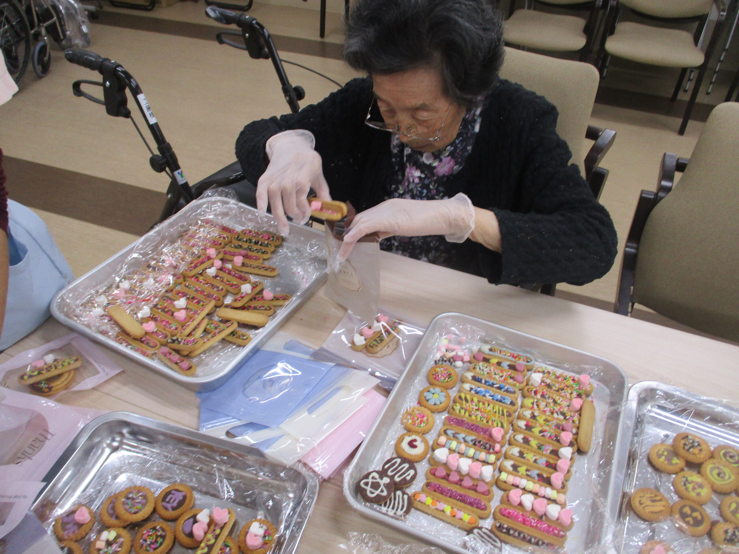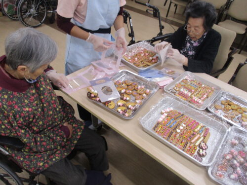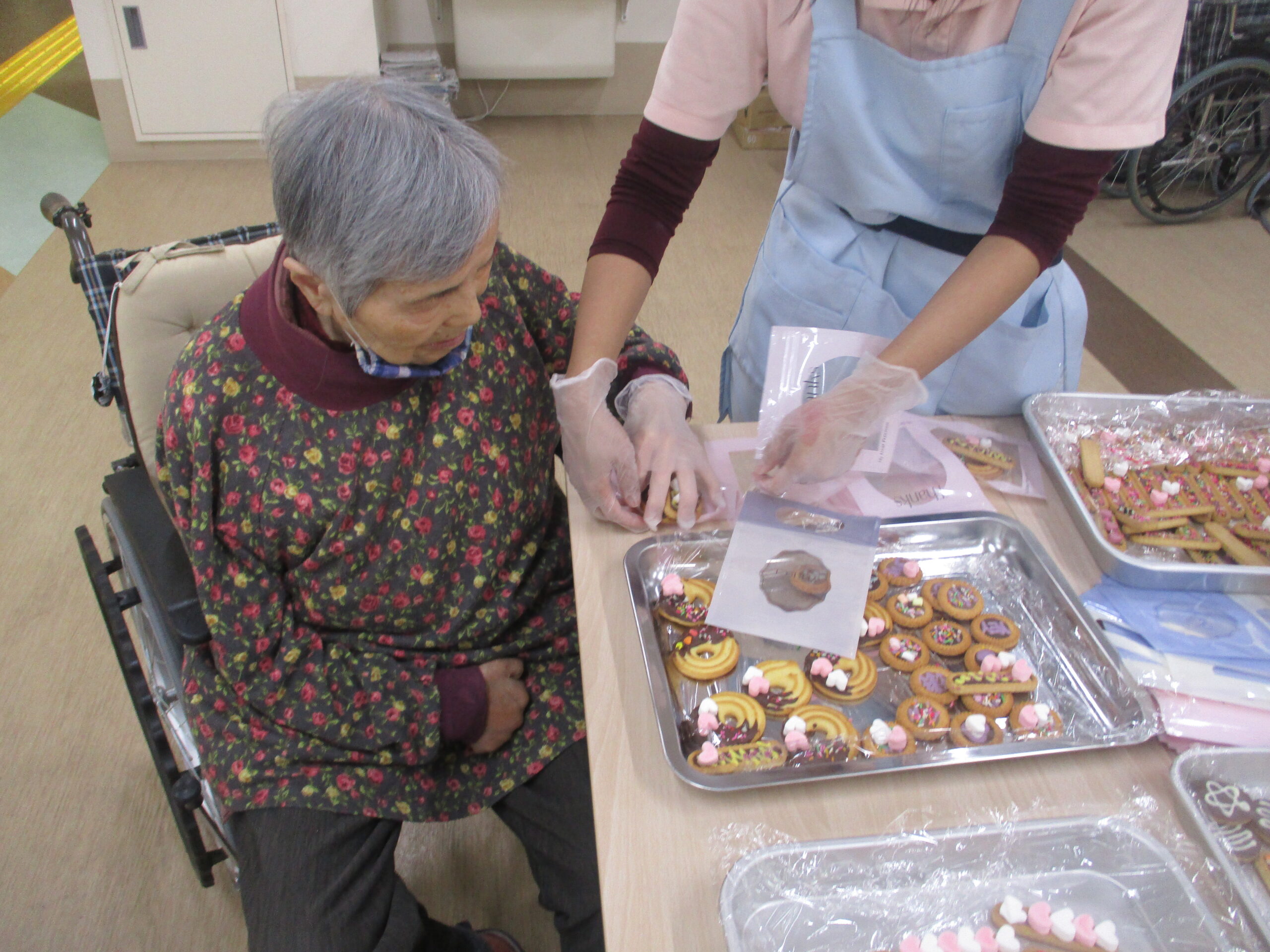 入居者様と一緒にチョコレートを袋に詰めました🍫色々なお菓子をデコレーションしながら楽しみました。