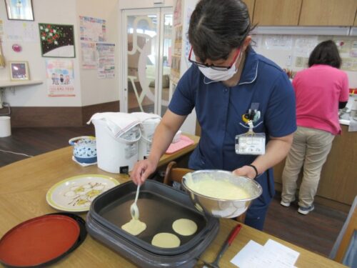 ベースとなるパンケーキを焼いていきます👩‍🍳