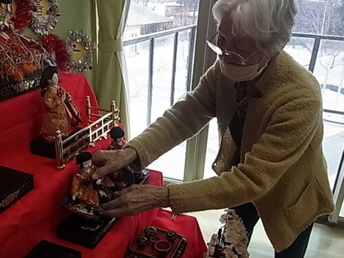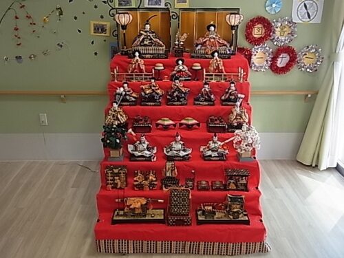 さわやか室蘭弐番館 2階 14日午後の様子♪ 2026-02-15 2026-02-15 皆様こんにちは♪ 14日午後の様子をお届けします 食堂にひな人形を飾り付けました 御所車を右側に置きます 三人官女の間に置くお餅です 五人囃子を置きます 完成しました! おやつはロールケーキです ご馳走様でした☆