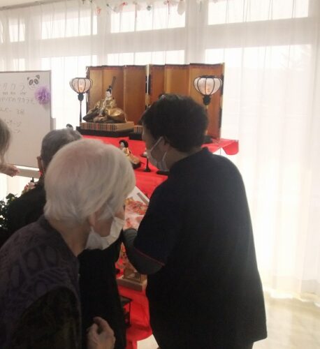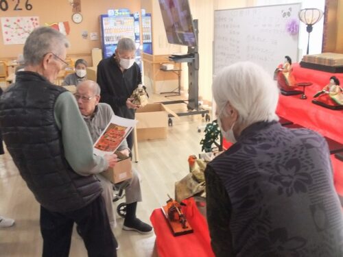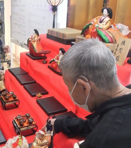 さわやか室蘭弐番館 3階 15日の様子♪ 2026-02-16 2026-02-15 皆様こんにちは♪ 15日の様子をお届けします 食堂に雛人形を飾り付けました 写真を見ながら配置場所を確認です 入居者様同士会話を 楽しみながら飾り付けました☆