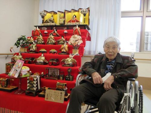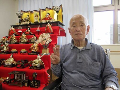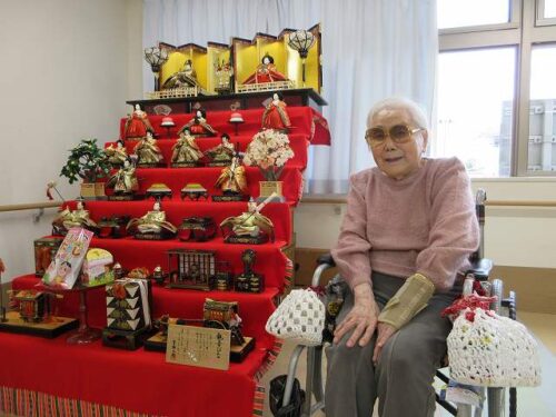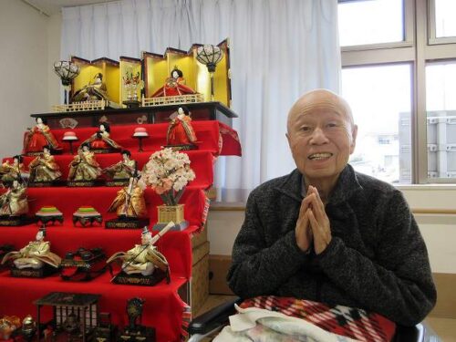 桃の節句を前に、ひな人形🎎の飾りつけを終え、