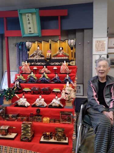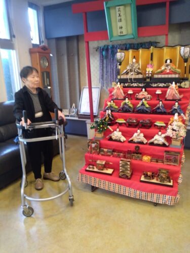 飾った雛人形を女性の入居者様が見学に来られました。