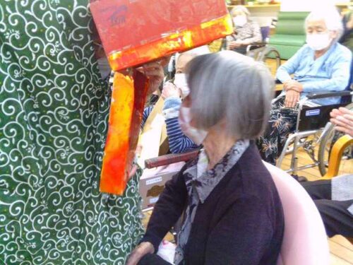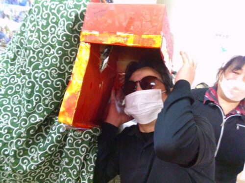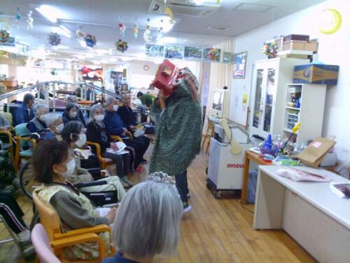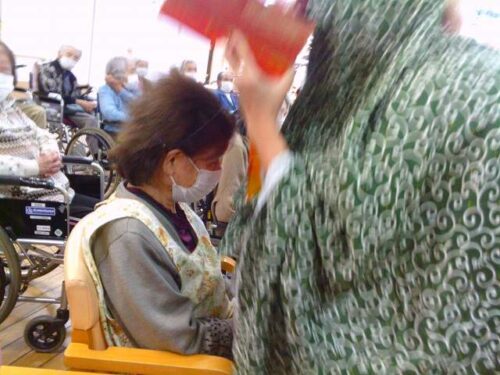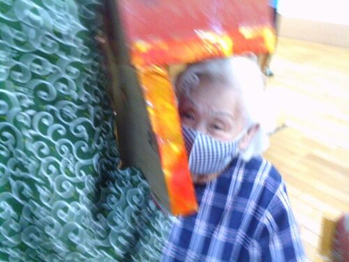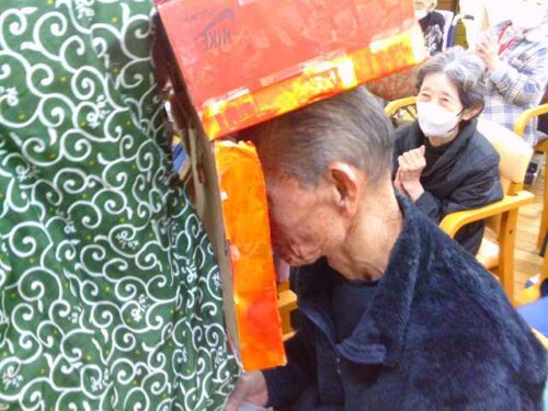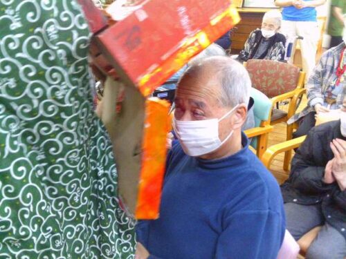 1月生まれさんたちガブガブと噛みつく獅子舞さん・・・🦷👹🦷