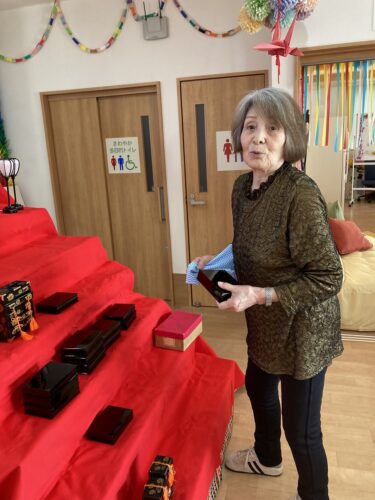 今回はご利用者様と一緒にひな祭り用の壁絵を作りました(*^^)v