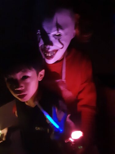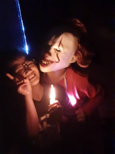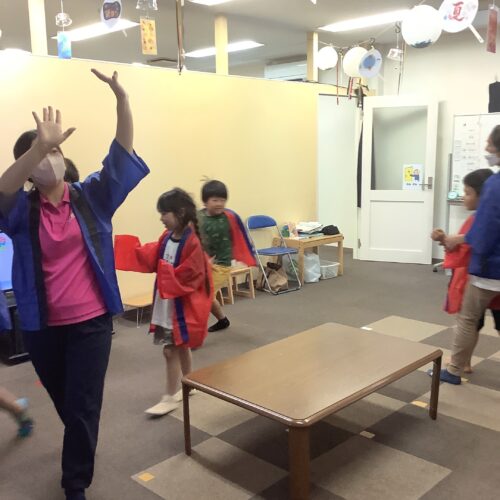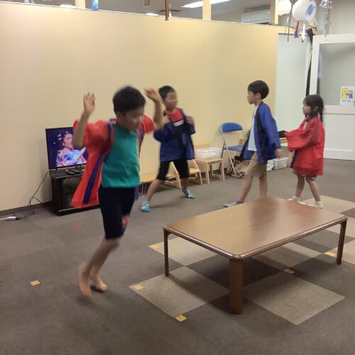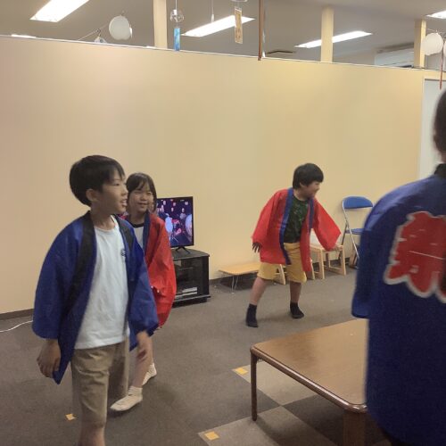 はっぴを着て『祭り囃子でゲラゲラポー』を