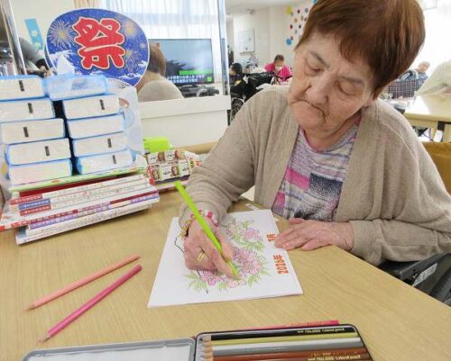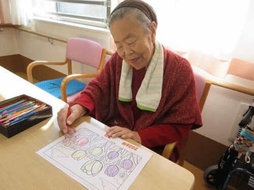 食堂では来月のカレンダーの色塗りをされていましたよ(⌒∇⌒)