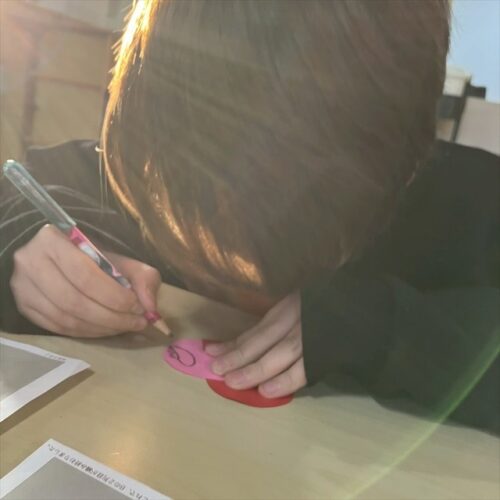 さわやか愛の家 さいだいじ館 バレンタイン工作♡ 2026-02-17 2026-02-17 今回はバレンタインという事で、ハートの形を編んで作ってみました☺️ 写真とにらめっこしながら少しずつ形にしていきます🥰✨ イラストやメッセージを描いて完成✨ しっかり気持ちが伝わりますように😊 さわやか愛の家さいだいじ館