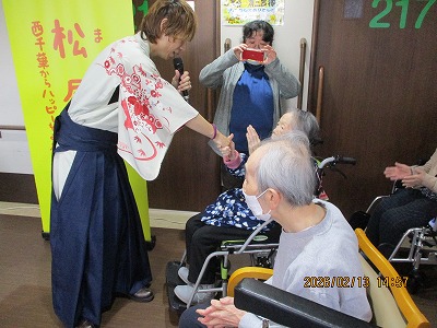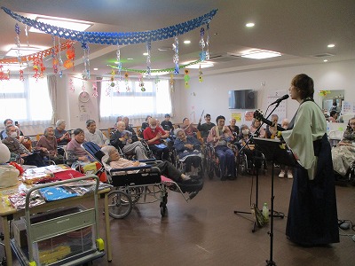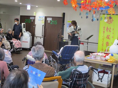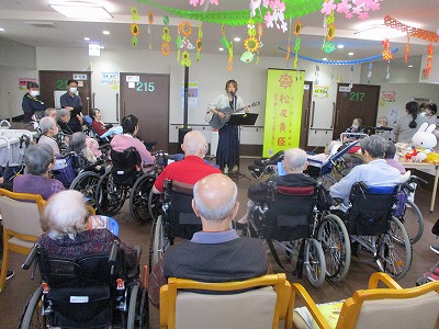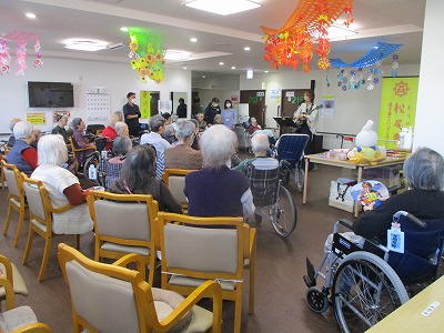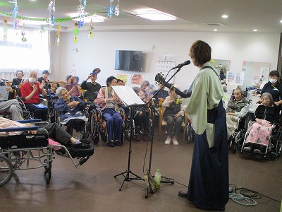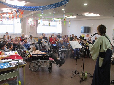 入居者様に馴染みのある曲から御自身が実際に歌っている曲を数曲披露してくださり、