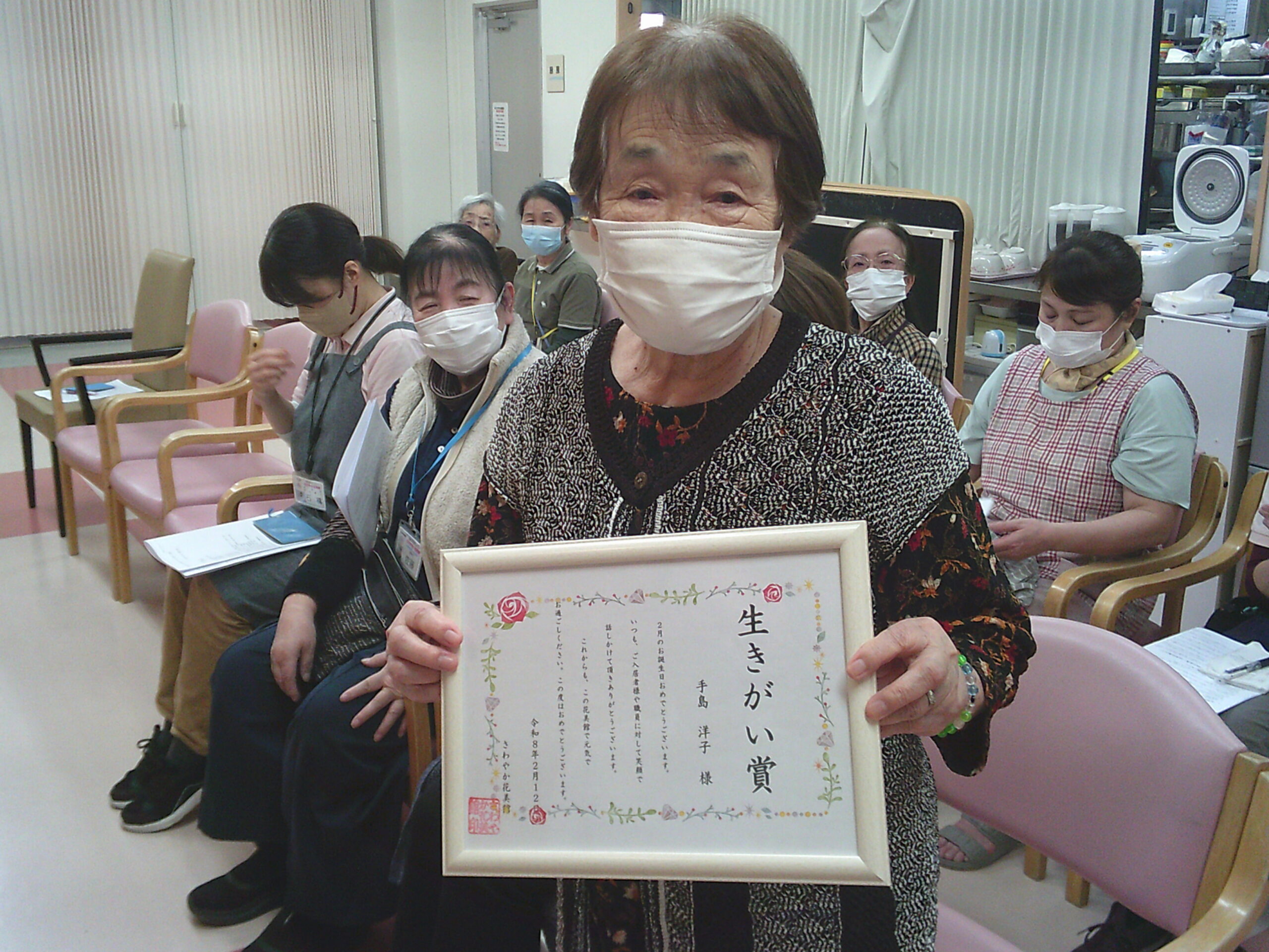 さわやか立花弐番館 さわやか立花館 2月職員会議 2026-02-17 2026-02-17 今月の職員会議で、入居者様へ「生きがい賞」の受賞です おめでとうございます! Digital Camera Digital Camera そしてもうひとつ 施設長が人事により転勤となりました 花美館職員一同、心から労いと感謝の意を表します 次の施設でも体調に気を付けてお過ごしください Digital Camera Digital Camera