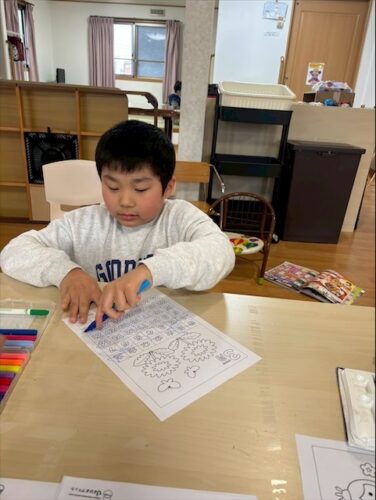 3種類の中から自分たちで好きな絵柄を選び色塗りを行なっています!