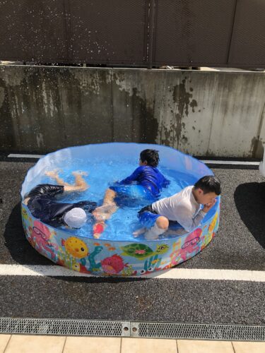 今年は大きなプールに顔をつけて息止め競争😤