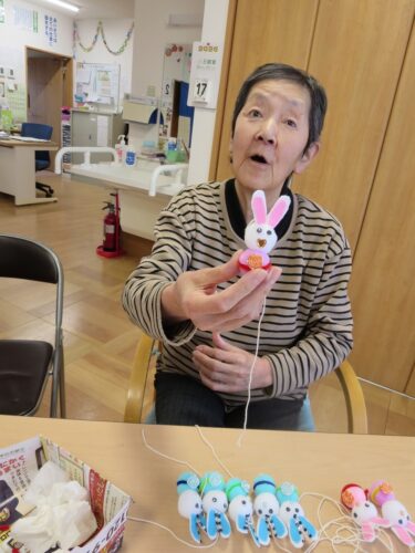 可愛らしいうさぎ🐰の飾りを作って下さってます。