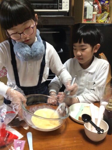 次に牛乳や砂糖を計り、混ぜてくれました🌟
